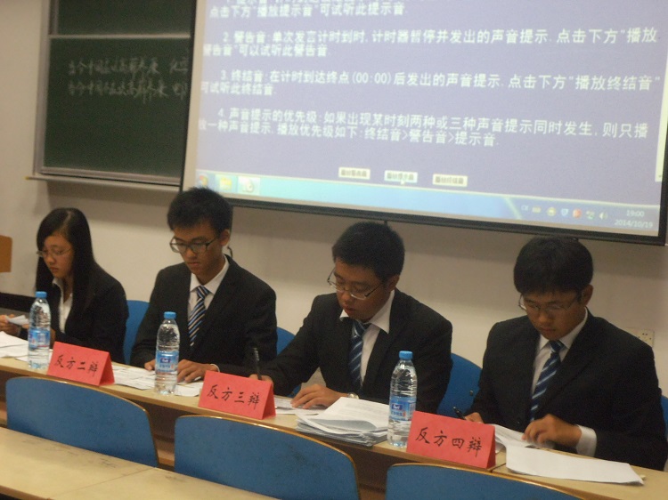 10月19日19:00,华中科技大学新生杯辩论赛初赛在东十二401室举行。围绕“当今中国是否应该高薪养廉”的辩题我院作为反方与正方代表化学系展开了激烈的辩论,最终我院全票获胜。
