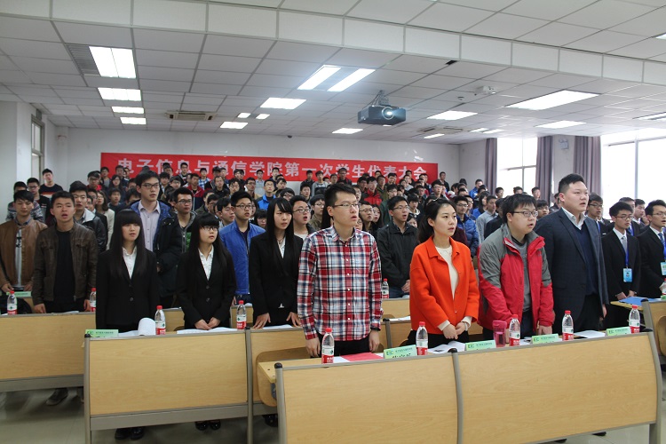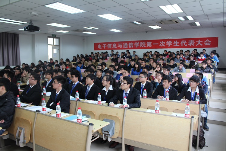 3月22日,电子信息与通信学院第一次学生代表大会在东九楼C栋102教室召开。电子信息与通信学院党总支副书记周群伟、学工组长梅健、分团委书记项威、辅导员高骥、司玮辰、潘欣、张昊以及华中科技大学学生会主席陈家乐出席会议。大会由2014届团学联副主席李频靓主持,校学生会主席陈家乐代表校学生会致信祝贺。