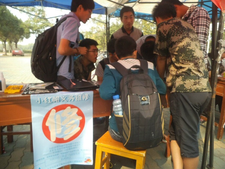 值得一提的是,在本次路演中,小红帽队员首次对洗衣机进行了维修。某女生反映寝室洗衣机出现了故障,小红帽队员在此之前从未有过维修洗衣机的经验,但是本着义务维修的奉献精神,小红帽接受了此项维修任务。队员郭佳玮从女生寝室搬来两台洗衣机在路演现场维修。最终经过大家的努力,修好了一台洗衣机,另外一台洗衣机因为内部被胶枪固定死而无法拆卸,只能放弃。郭佳玮也为维修洗衣机延长了早班时间,下午依然在路演现场进行维修活动。