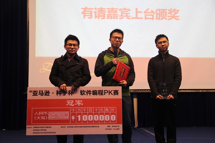 所高校的比赛,十年来的每一年都见证了“种子杯”的发展与成长。本次“亚马逊•种子杯”软件编程PK赛暨第一节武汉高校软件编程邀请赛,由共青团华中科技大学委员会、华中科技大学学生会、华中科技大学科学技术协会主办、电子与信息工程系分团委学生会承办、Dian团队提供技术支持,更得到了来自校团委和电信学院领导的大力支持和亚马逊公司的倾情赞助。