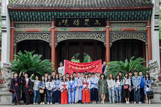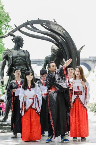 中国传统文化博大精深,它们藏于那一卷卷史书中,它们躲在那一本本名著里。在游览完晴川阁后,首先进行的诗词朗诵活动让同学们重温经典,感受传统文化的魅力。电信学子们站在铁门关下,穿着古装充满感情地朗诵着“晴川历历汉阳树,芳草萋萋鹦鹉洲”,更加真切地感受到崔颢当时的心情;竹林掩映,微风拂拂,面对滚滚江水,踱步间重复着屈原的“虽体解吾犹未变兮,岂余心之可惩”,朗诵者沉浸其中,仿佛陷入了沉思。