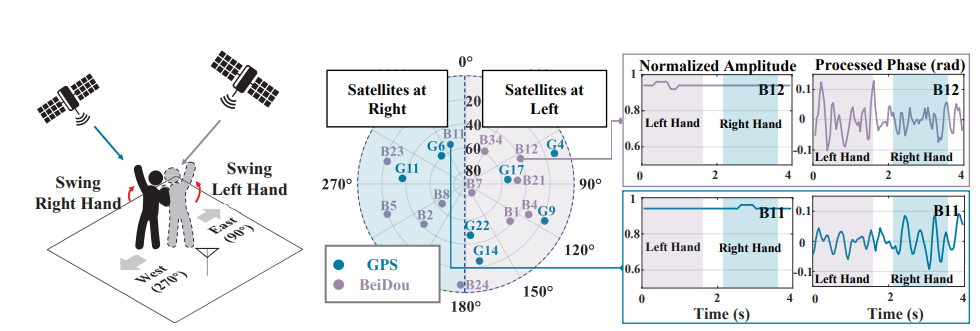 在该论文中,王巍教授团队详细介绍了近期研究设计的一种利用环境中的GNSS卫星信号感知周围人员活动的泛在无线感知技术,可实现对周围人员的动作感知,轨迹追踪乃至细粒度的呼吸感知。