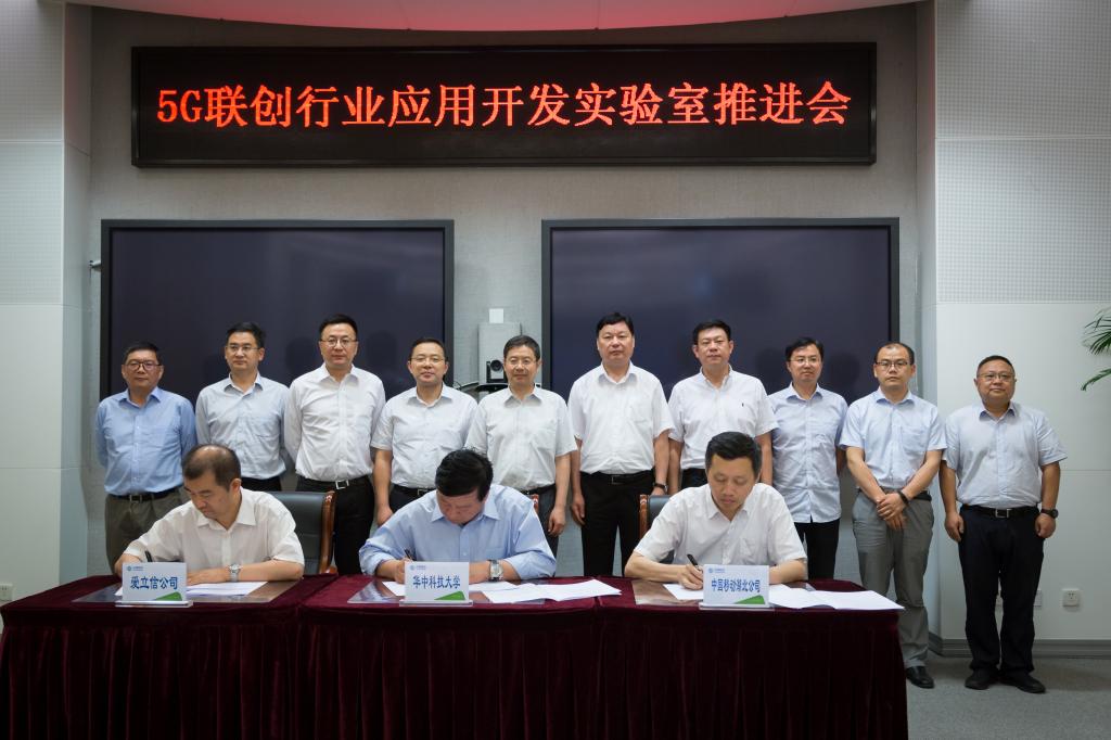 6月21日,华中科技大学、爱立信(中国)通信有限公司和中国移动通信集团湖北有限公司三方共建的“5G联创行业应用开发实验室”在中国移动湖北公司举行签约仪式。校长丁烈云、江汉区区委书记张俊勇、中国移动湖北公司总经理范秉衡以及爱立信东北亚区执行副总裁方迎参加签约仪式。我院院长黄晓庆代表我校与爱立信(中国)通信有限公司和中国移动通信集团湖北有限公司签订联合创新研究协议。