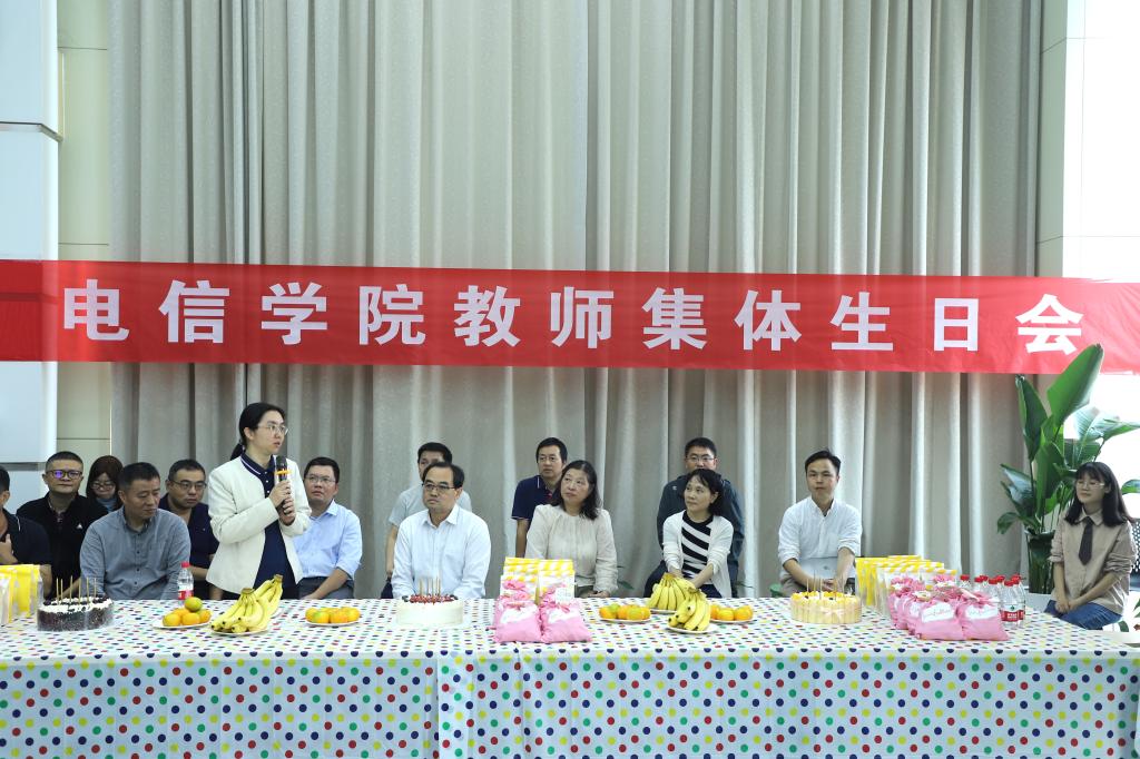 首先,葛茜感谢校工会对电信学院的关心和支持。她指出,在校工会的指导和共同资助下,学院对东十七楼A301原报告厅进行修缮和改造,将其建设成为“电信之家”,配置了羽毛球场、乒乓球台、健身器材、音响等设施设备,为学院师生开展文体活动、校友返校聚会提供一个专用空间,营造了电信学院大家庭温馨暖心的氛围。她向老师们表达了生日祝福,期待学院工会能够继续组织此类特色活动,将“电信之家”越办越好。