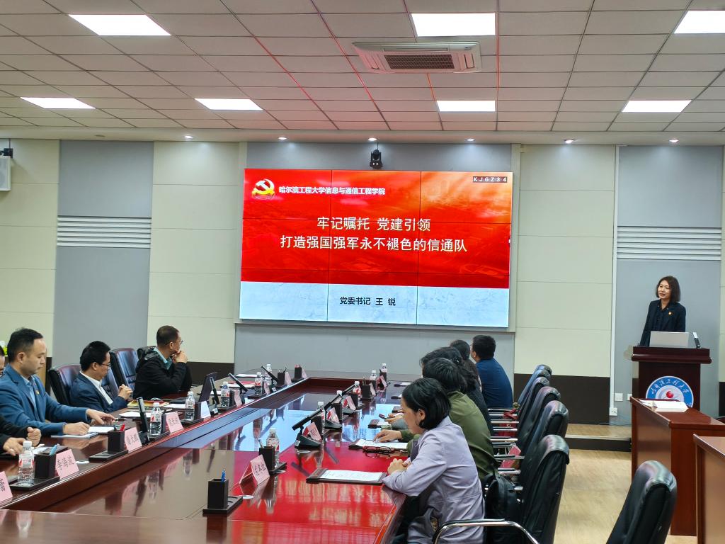 哈尔滨工程大学信通学院党委书记王锐对电信学院党委书记葛茜带领教学实验中心党支部的党员一行到访信通学院表示热烈欢迎,并以“牢记嘱托 党建引领 打造强国强军永不褪色的信通队”为题,介绍了信通学院传承“哈军工精神”,贯彻落实习近平总书记视察学校重要讲话精神的党建工作举措和教学、科研、人才培养等工作取得的成效。