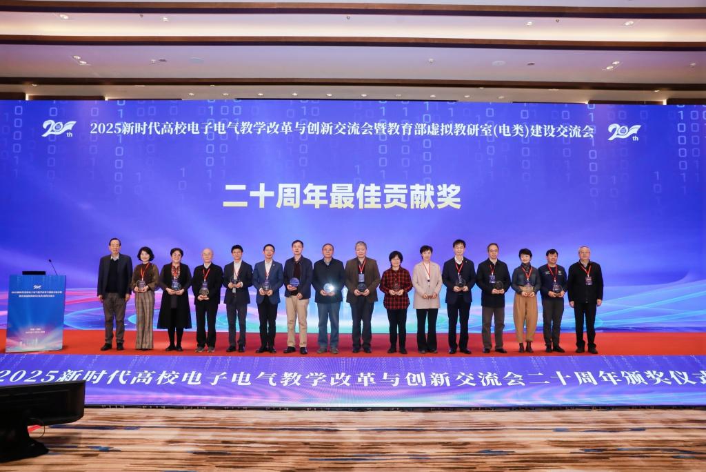 在交流会成功举办的二十周年之际,特举办“新时代高校电子电气教学改革与创新交流会二十周年颁奖仪式”,以向历年倾力支持交流会举办的院校和老师表达最诚挚的谢意。颁奖仪式共设有“最佳贡献奖”“最佳参与奖”和“最佳组织奖”三项奖项。中国科学院院士、教育部高等学校电子信息类专业教学指导委员会主任委员、西安电子科技大学郝跃教授和教育部高等学校电气类专业教学指导委员会主任委员、南京师范大学胡敏强教授为各位专家颁发“最佳贡献奖”。