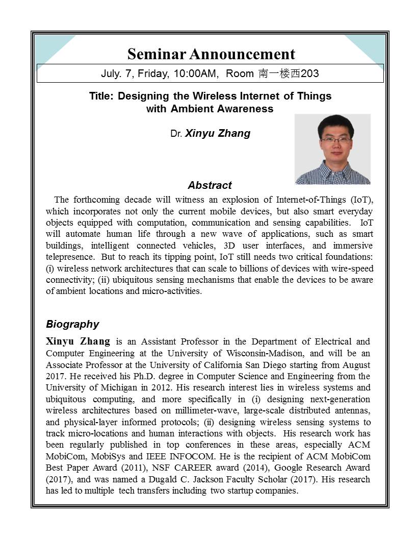 报告题目:Designing the Wireless Internet of Things with Ambient Awareness