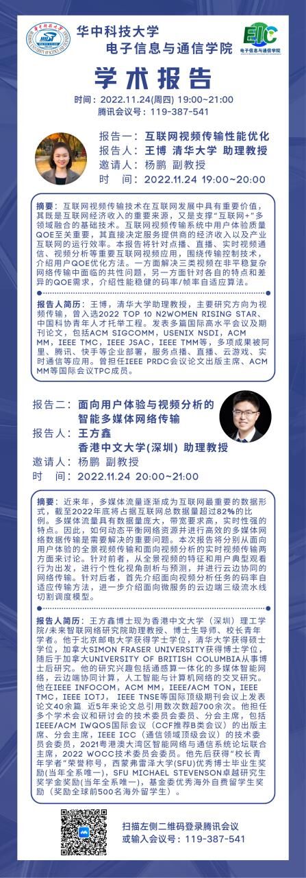 清华大学王博博士和香港中文大学(深圳)王方鑫博士学术报告