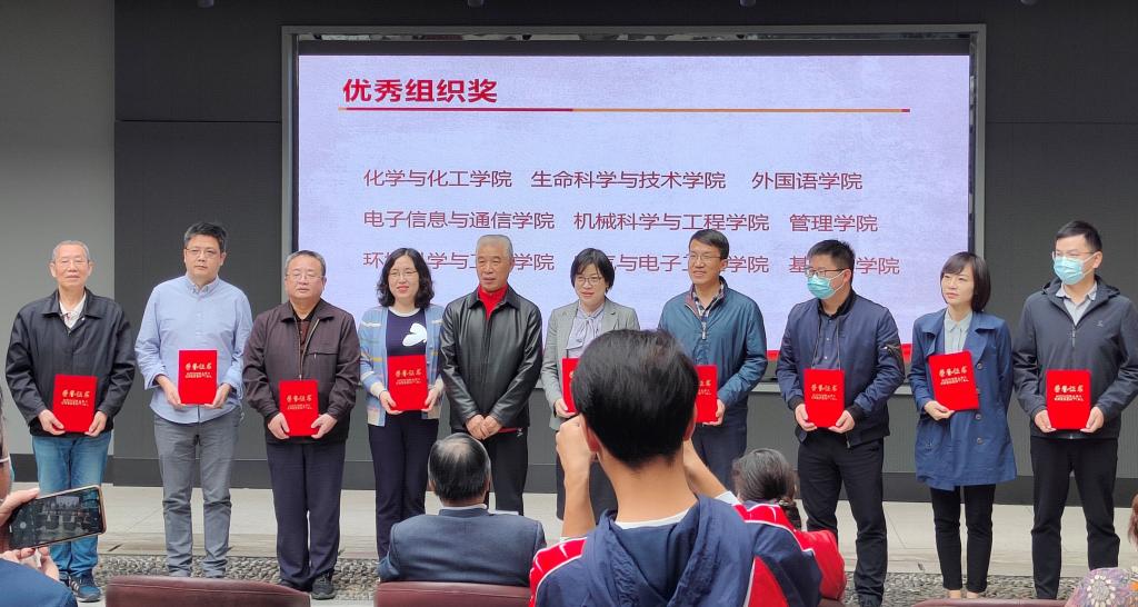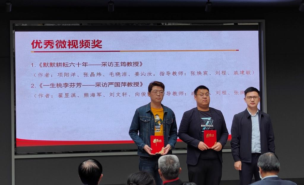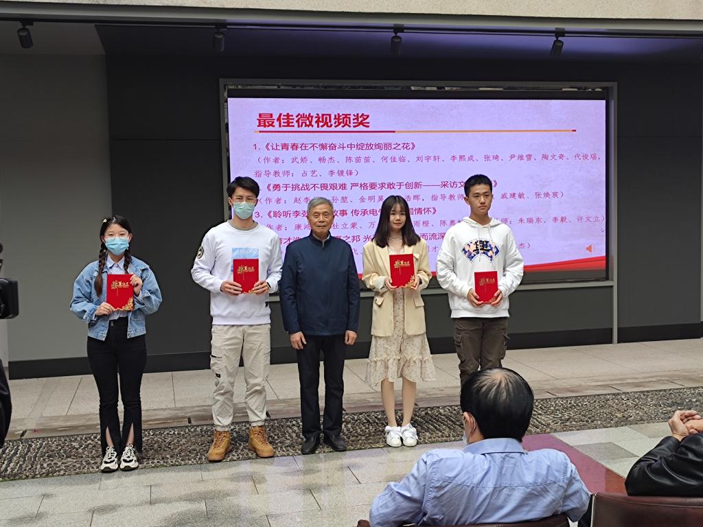 2021年11月1日下午3点,华中科技大学关工委2021年“读懂中国”活动颁奖仪式暨作品展演在老年活动中心举行。我院学生作品《勇于挑战不畏艰辛,严格要求敢于创新——采访文灏教授》荣获“最佳微视频奖”,《默默耕耘六十年——采访王筠教授》、《一生桃李芬芳——采访严国萍教授》荣获“优秀微视频奖”,《一生许党,电信报国——文灏教授专访》、《恪守入党誓词,默默耕耘六十年——王筠教授专访》、《党旗飘扬讲台,一生桃李芬芳——严国萍教授专访》荣获优秀征文奖,电子信息与通信学院荣获优秀组织奖。